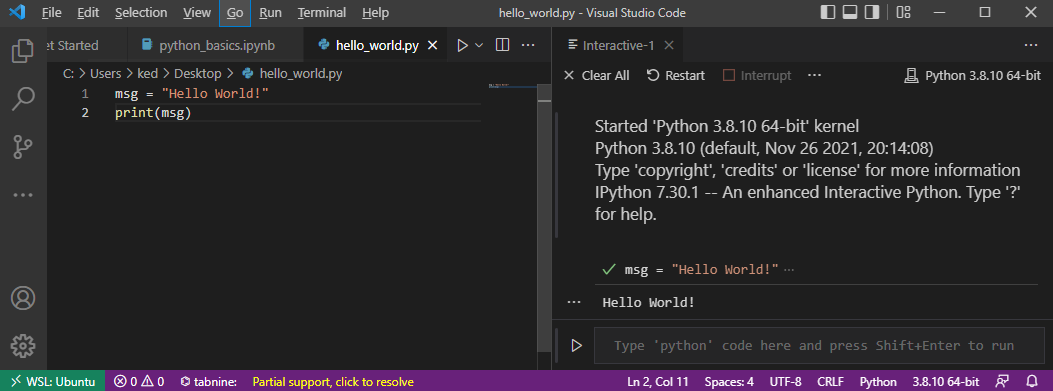 code and select Run current file in interactive window.